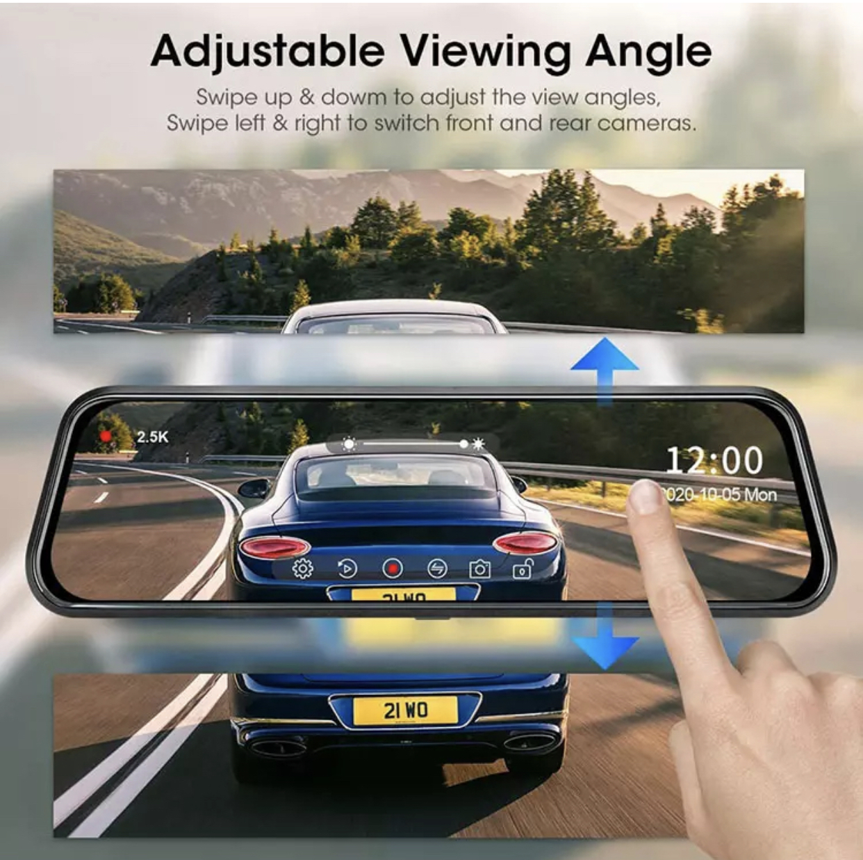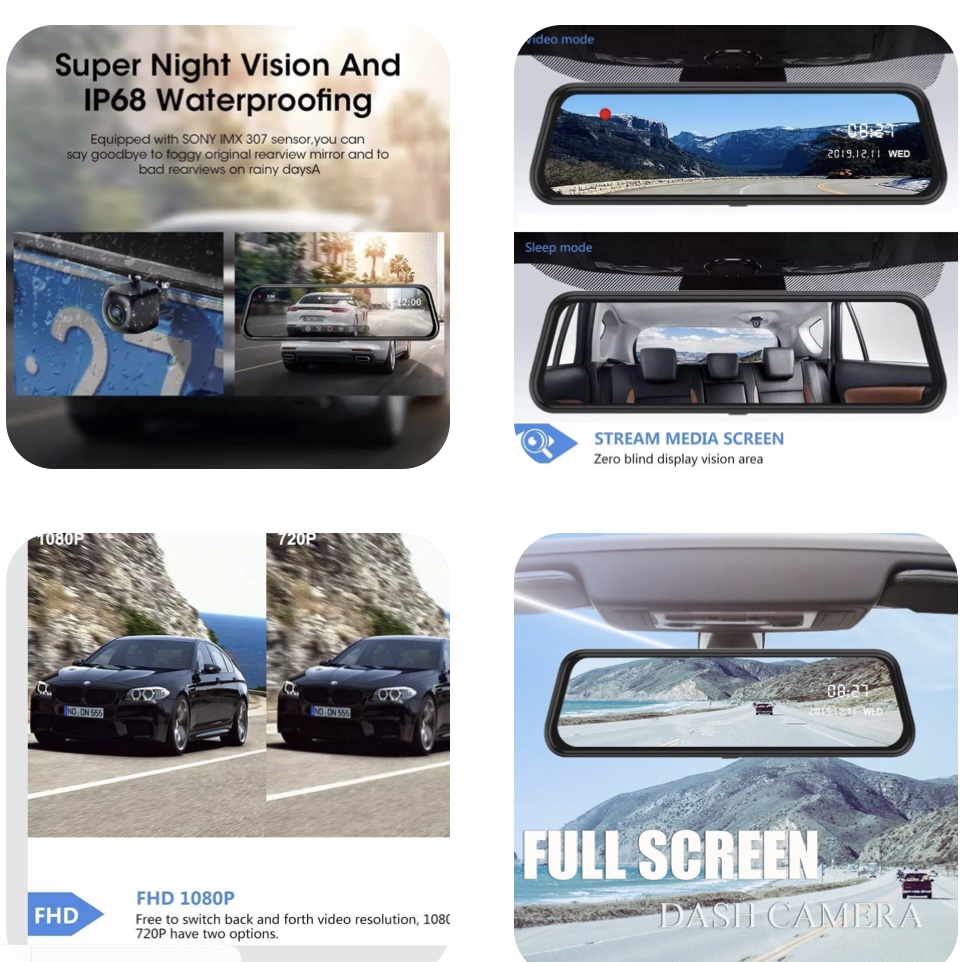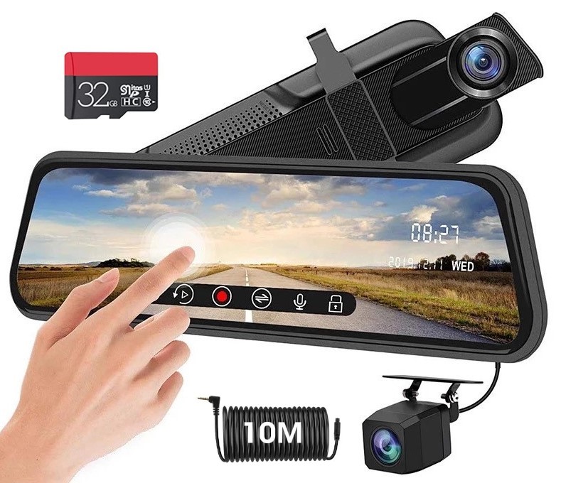 • Full 10 inch HD Touch Screen Rear Mirror 1080p Dash Camera,