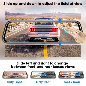 🚘【Super Night Vision & Safe Parking】High Definition of 1080P backup camera presents super night vision in low light conditions, and the backup camera display with guidelines assisting you with safe parking. It is flexible and convenient for you to adjust the view angle by scrolling up and down on the touchscreen and switch the camera back and forth. The rear-view mirror camera can provide you with mirror image and vertical flip of the picture, you can adjust according to your actual situation.