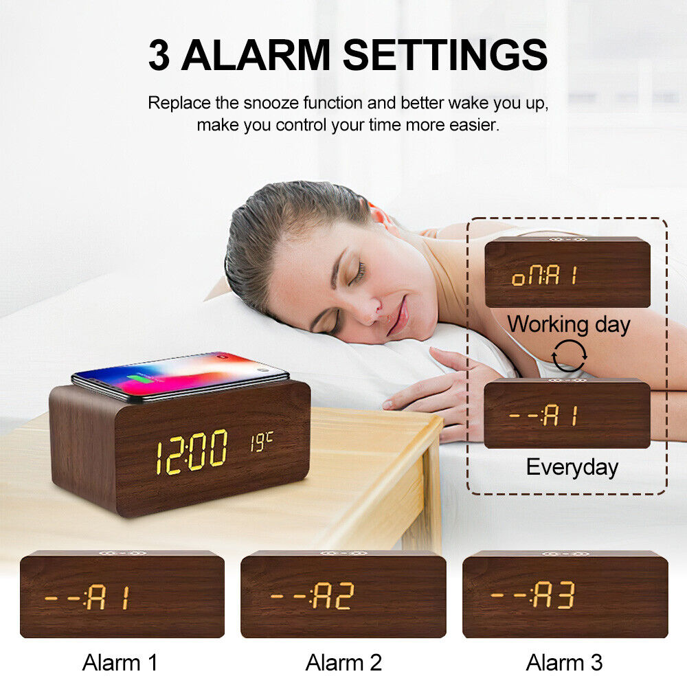 ✔️ 【CHARGE WHILE YOU SLEEP】With the Qi enabled Charging Alarm Clock there is no need to charge your smart devices away from your bedside – the built-in QI Wireless Charging pad is compatible with all Qi-enabled phones so you can rest your device on top for easy charging with no wires. Just put your phone on the top and when you wake up in the morning, it will give you a fully charged phone.